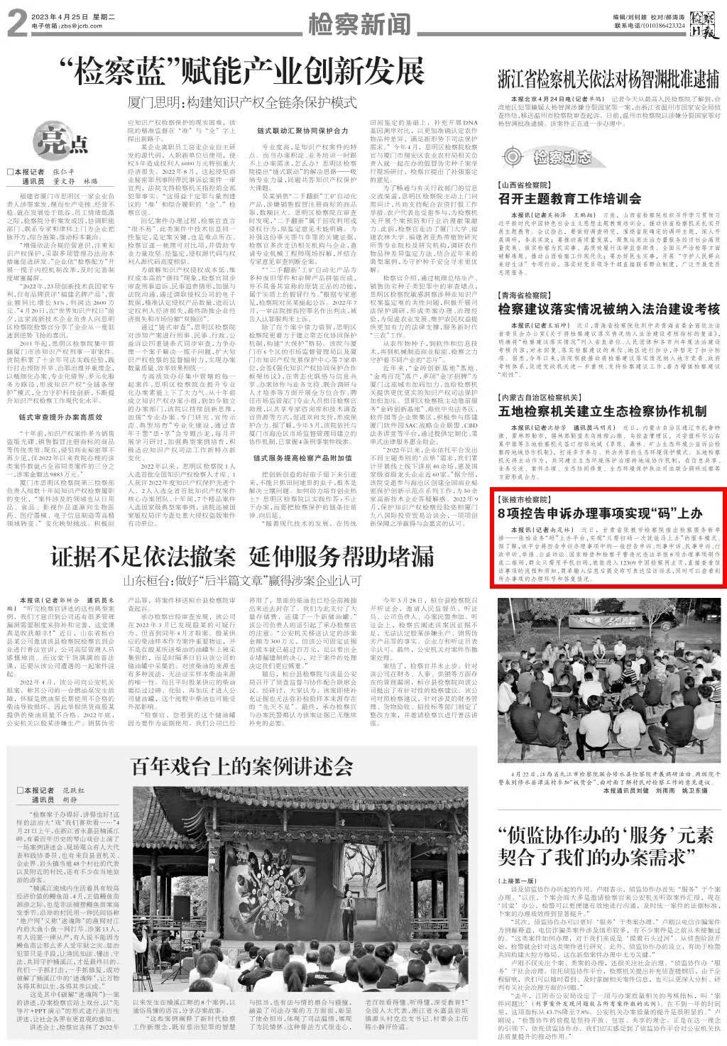 2023年4月25日,检察日报二版刊发《张掖市检察院:8项控告申诉办理事项实现“码”上办。