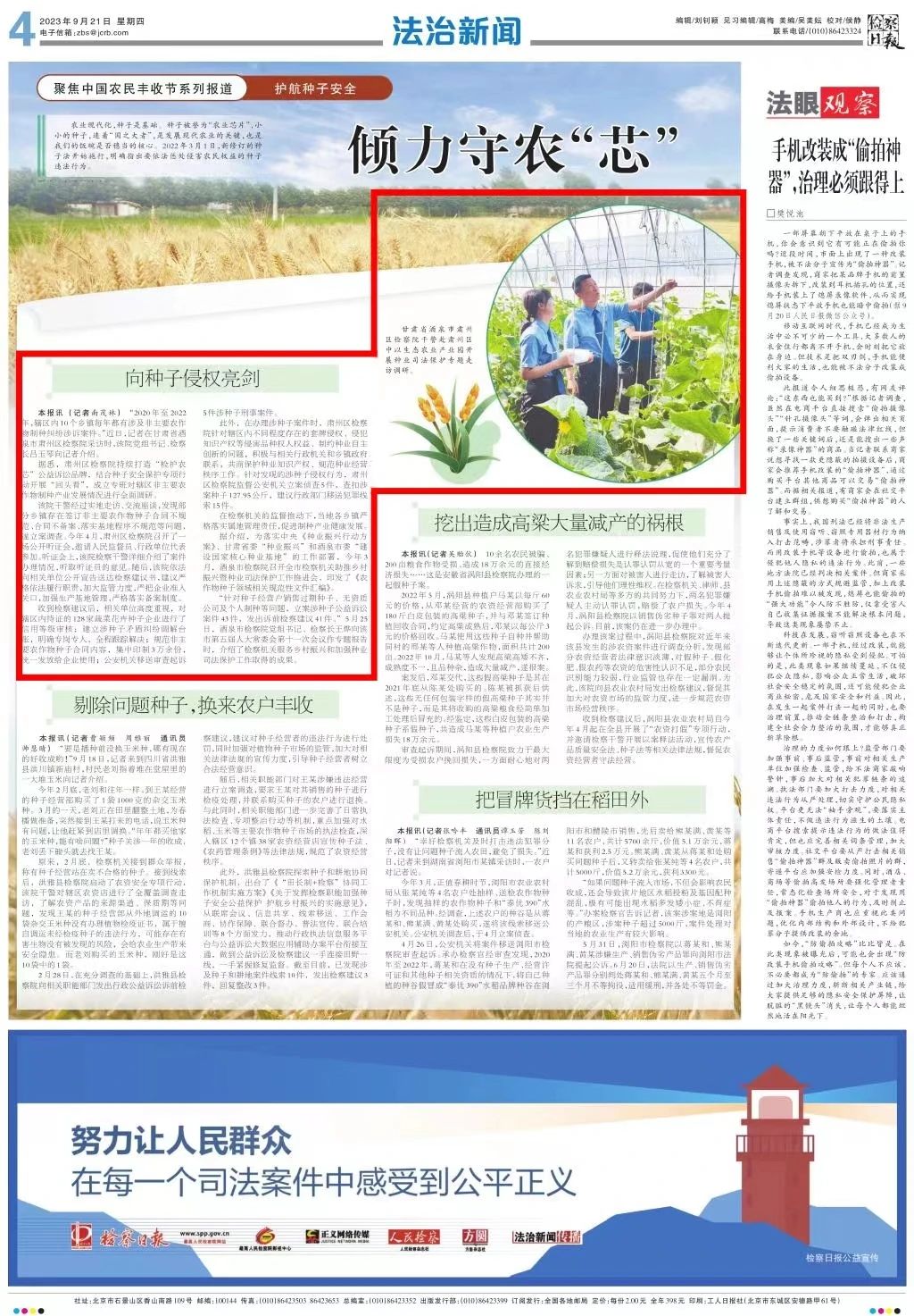 2023年9月21日,检察日报刊发《向种子侵权亮剑》。