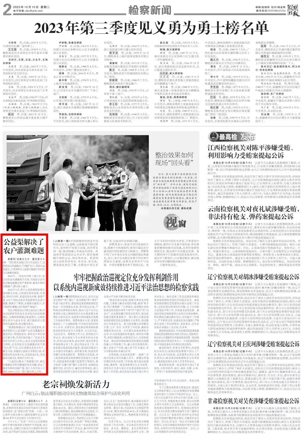 2023年10月10日,检察日报刊发《公益渠解决了农户灌溉难题》。
