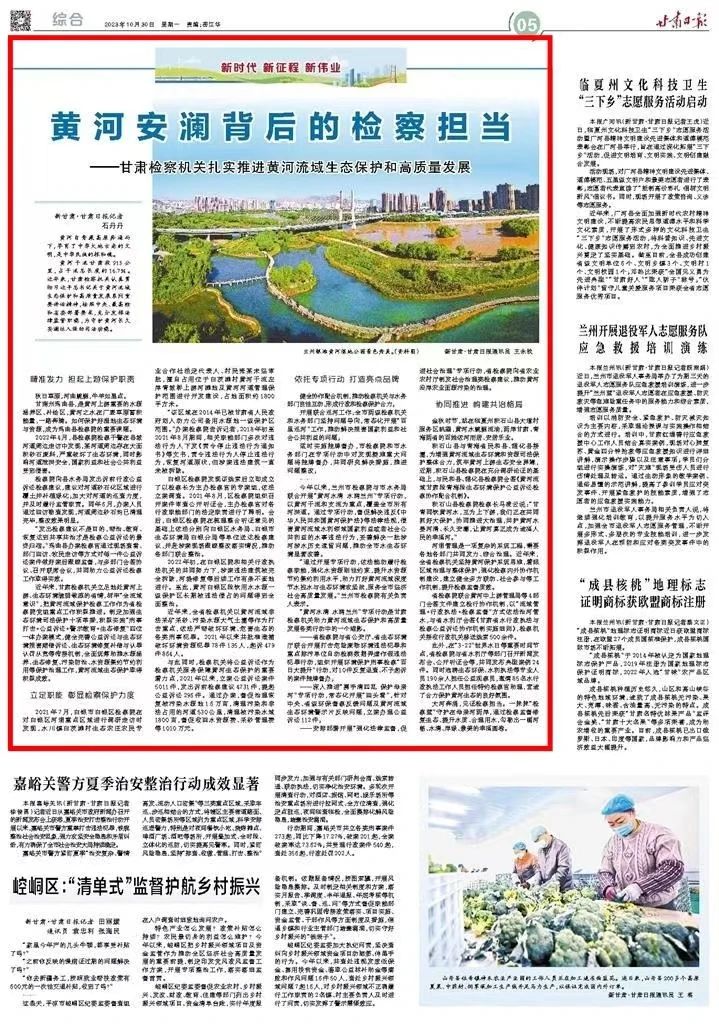 2023年10月30日,甘肃日报刊发《黄河安澜背后的检察担当——澳门彩