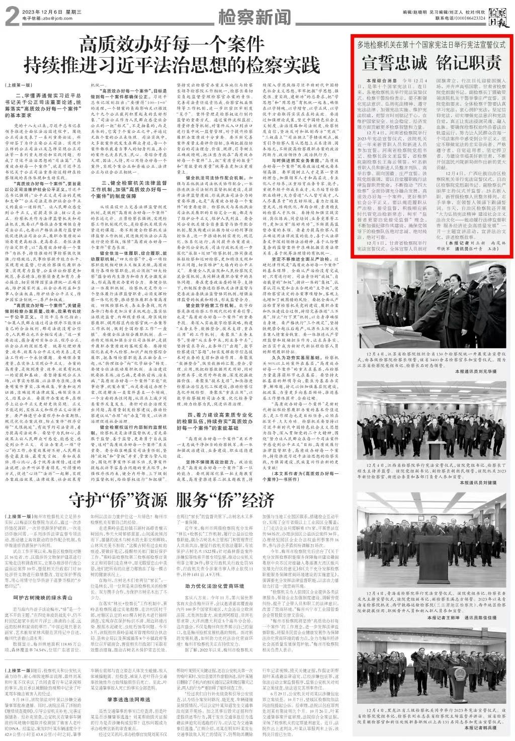 2023年12月6日,检察日报刊发《宣誓忠诚 铭记职责——多地检察机关在第十个国家宪法日举行宪法宣誓仪式》。