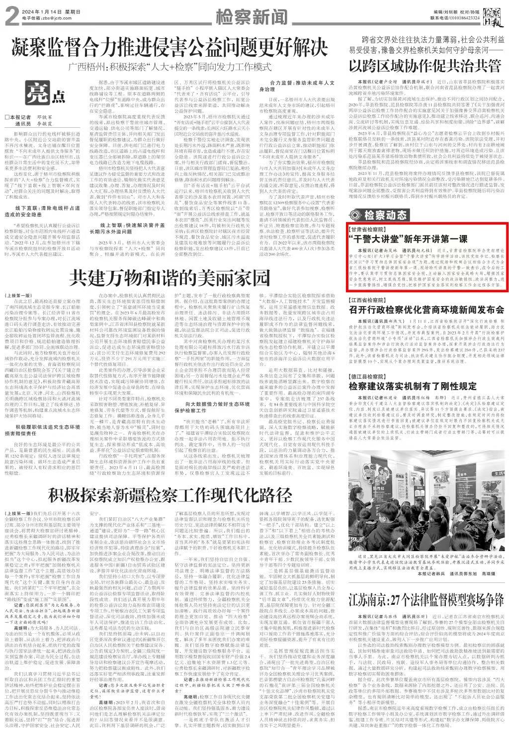 2024年1月14日,检察日报刊发《澳门彩