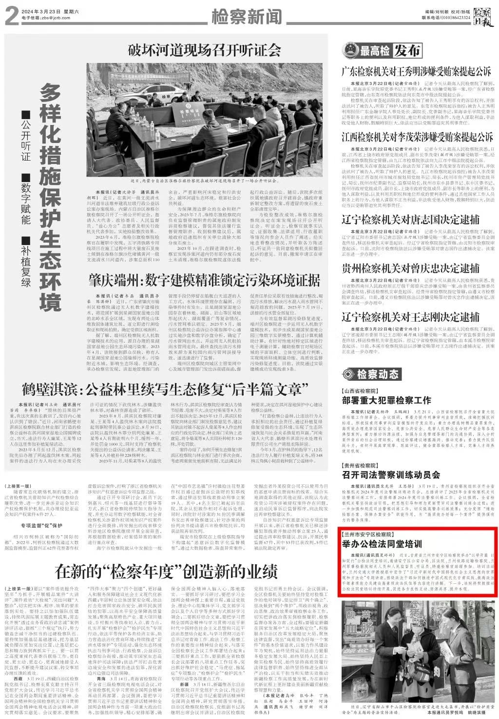 2024年3月23日,检察日报刊发《兰州市安宁区检察院:举办公检法同堂培训》。
