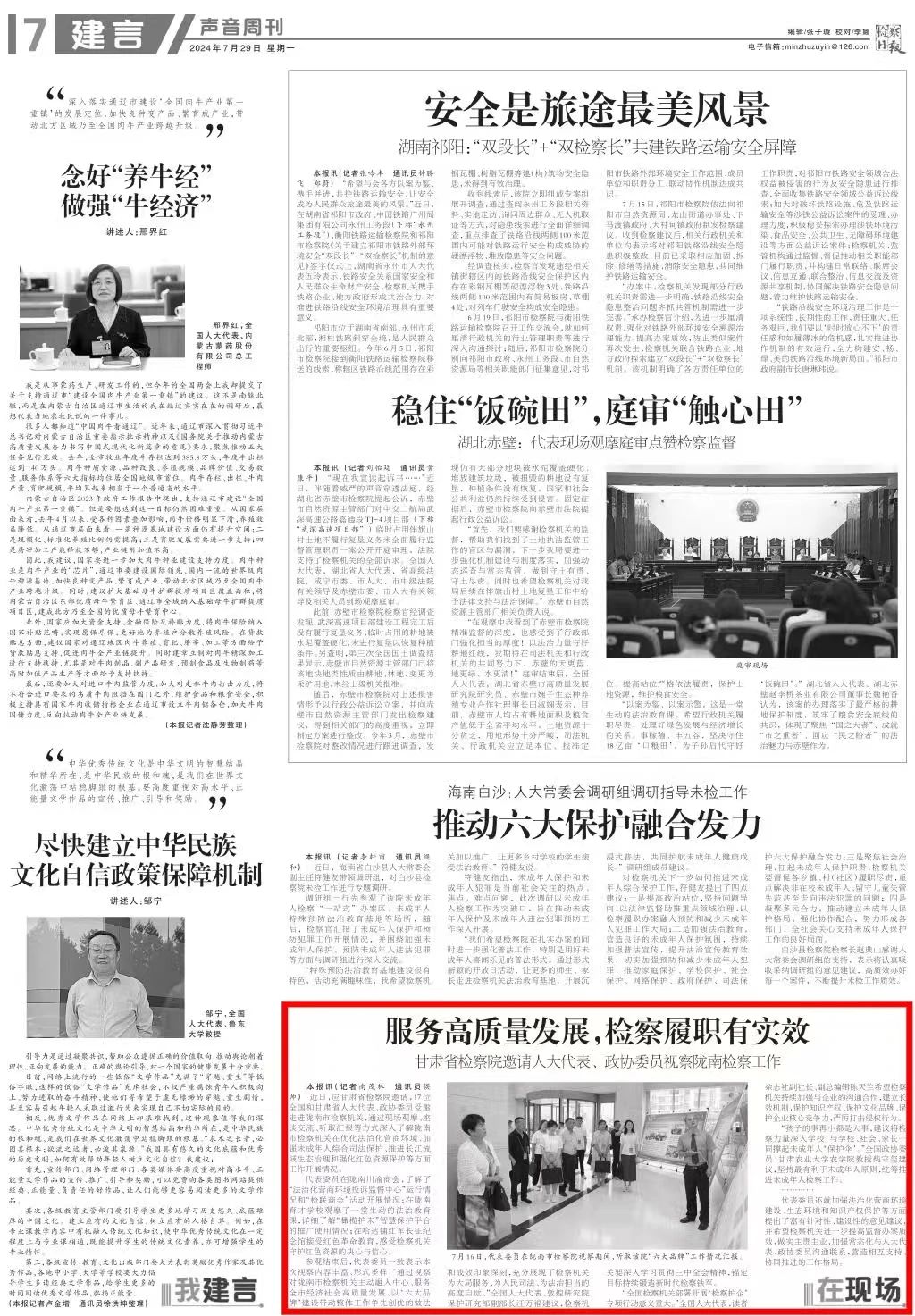 2024年7月29日,检察日报声音周刊刊发《服务高质量发展,检察履职有实效——澳门彩