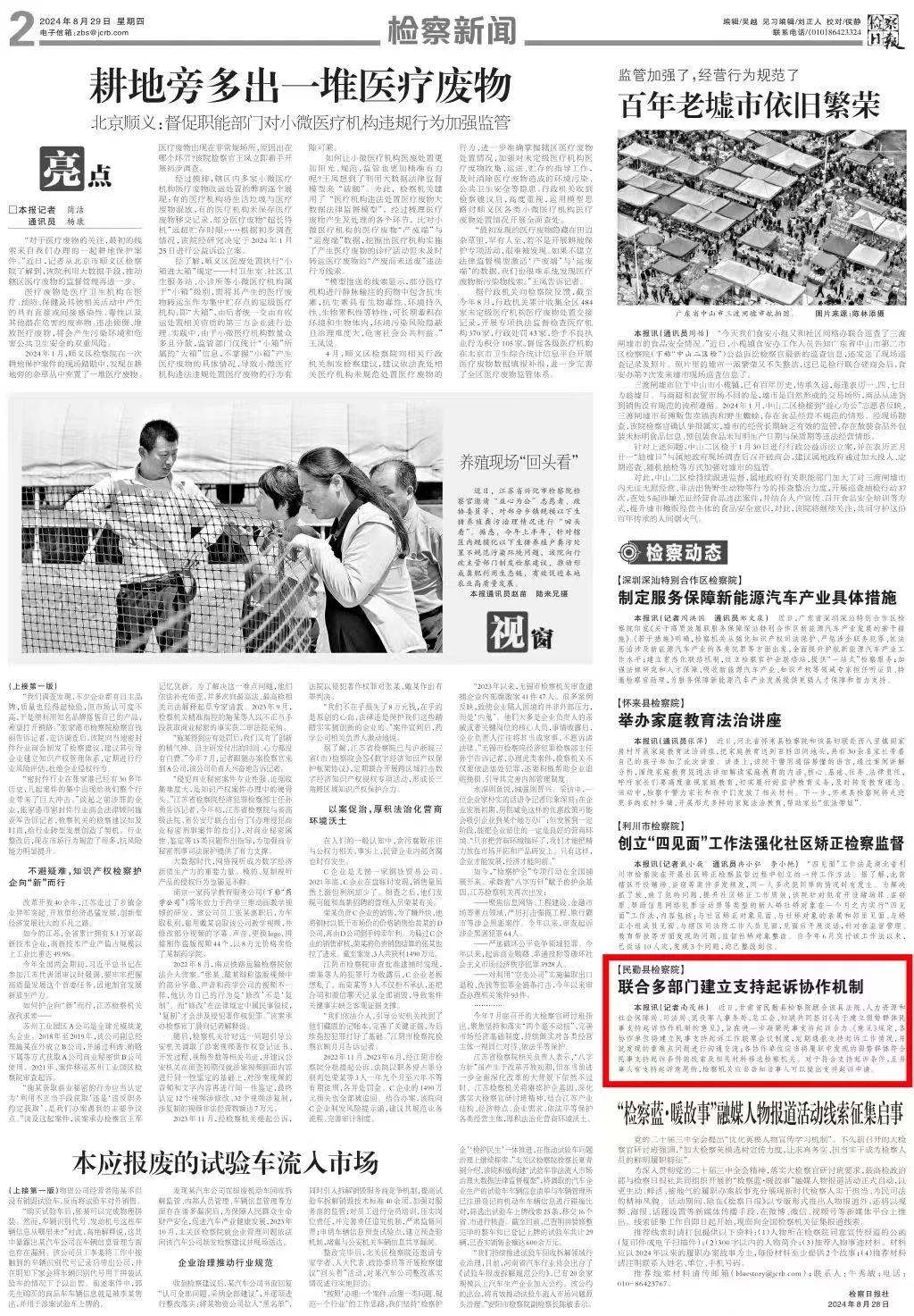 2024年8月29日,检察日报刊发《民勤县检察院:联合多部门建立支持起诉协作机制》。
