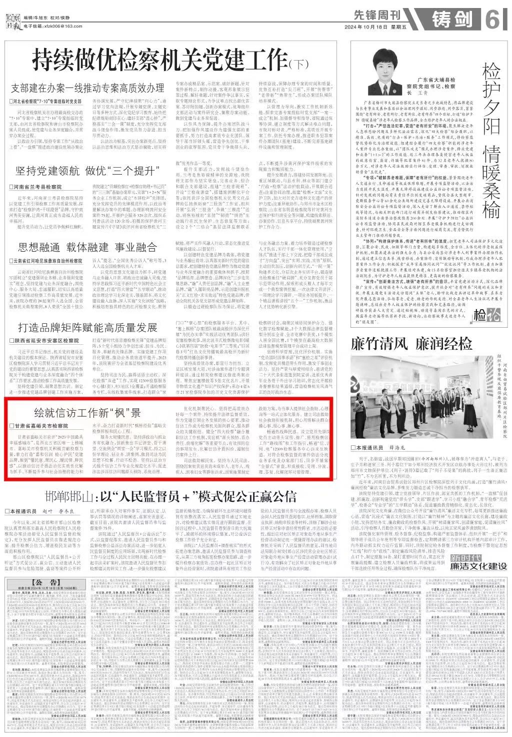 2024年10月18日,检察日报先锋周刊刊发《绘就信访工作新“枫”景》。