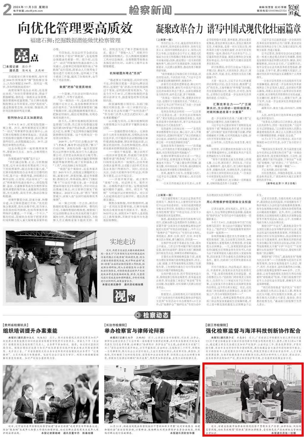 2024年11月3日,检察日报刊发临泽县检察院检察干警向红枣收购商“零距离”提供法律服务的图片新闻。