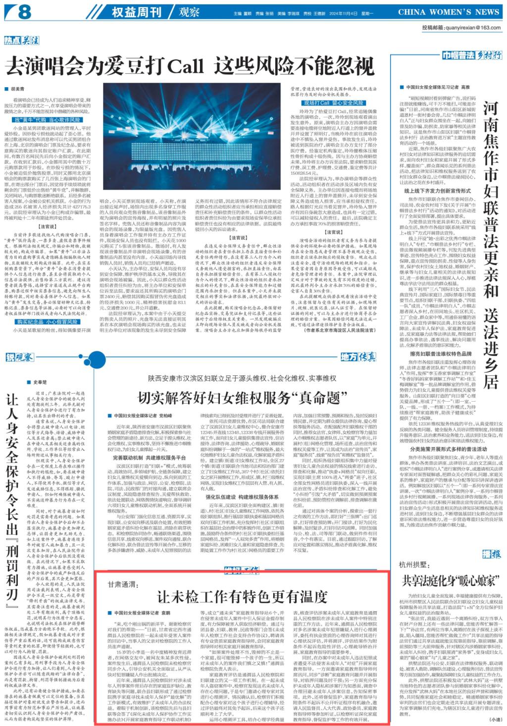 2024年11月4日,中国妇女报刊发《甘肃通渭:让未检工作有特色更有温度》。