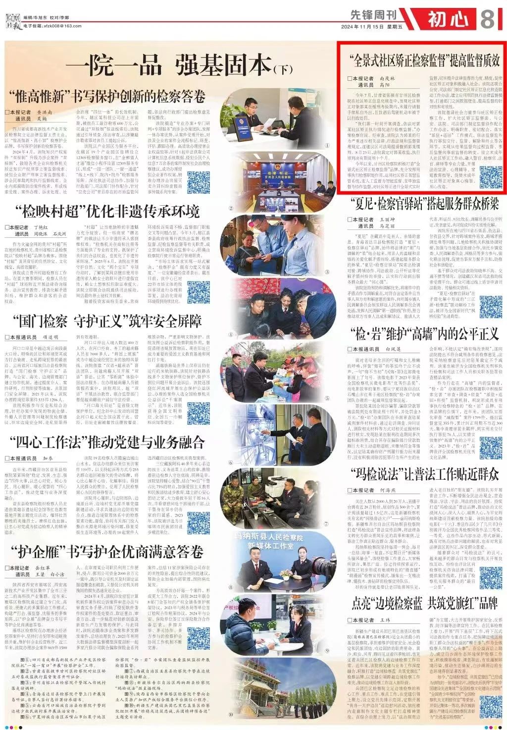 2024年11月15日,检察日报先锋周刊刊发《“全景式社区矫正检察监督”提高监督质效》。