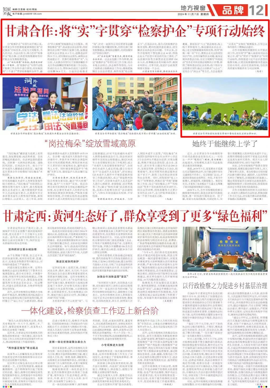 2024年11月7日,检察日报刊发《甘肃合作:将“实”字贯穿“检察护企”专项行动始终》。
