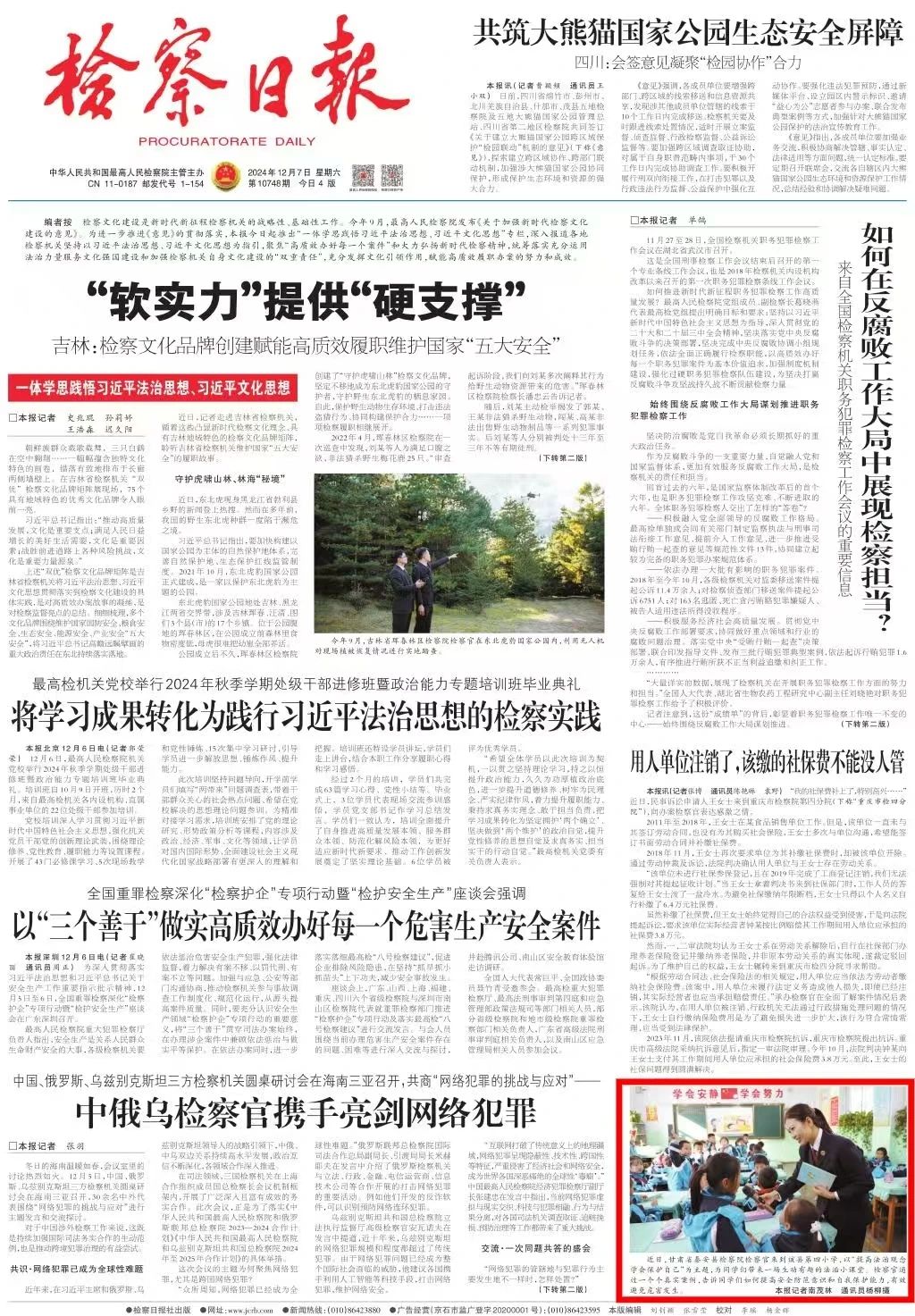 2024年12月7日,检察日报头版刊发甘肃省秦安县检察院检察官为该县第四小学同学们普法的图片新闻。