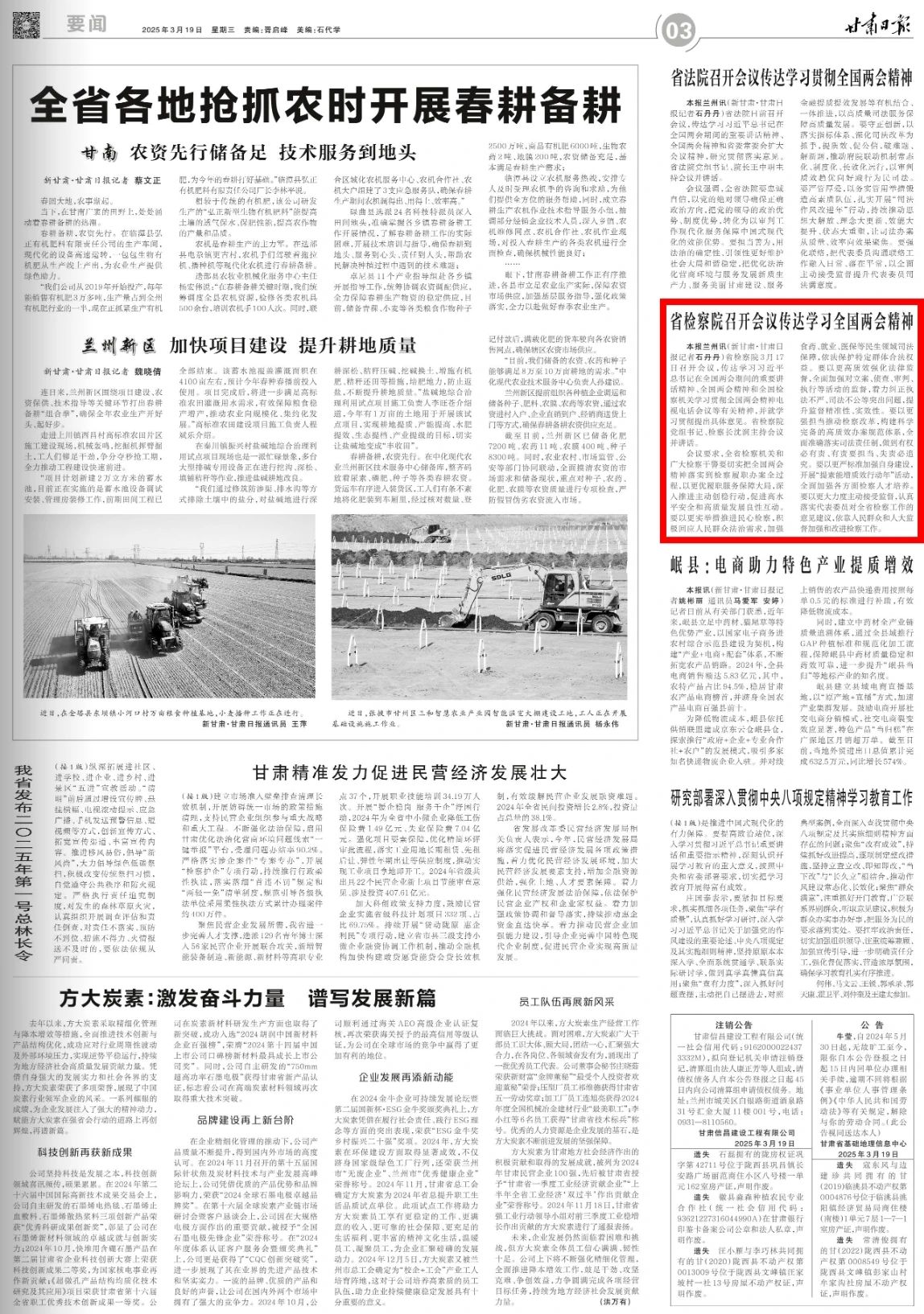 2025年3月19日,甘肃日报刊发《澳门彩