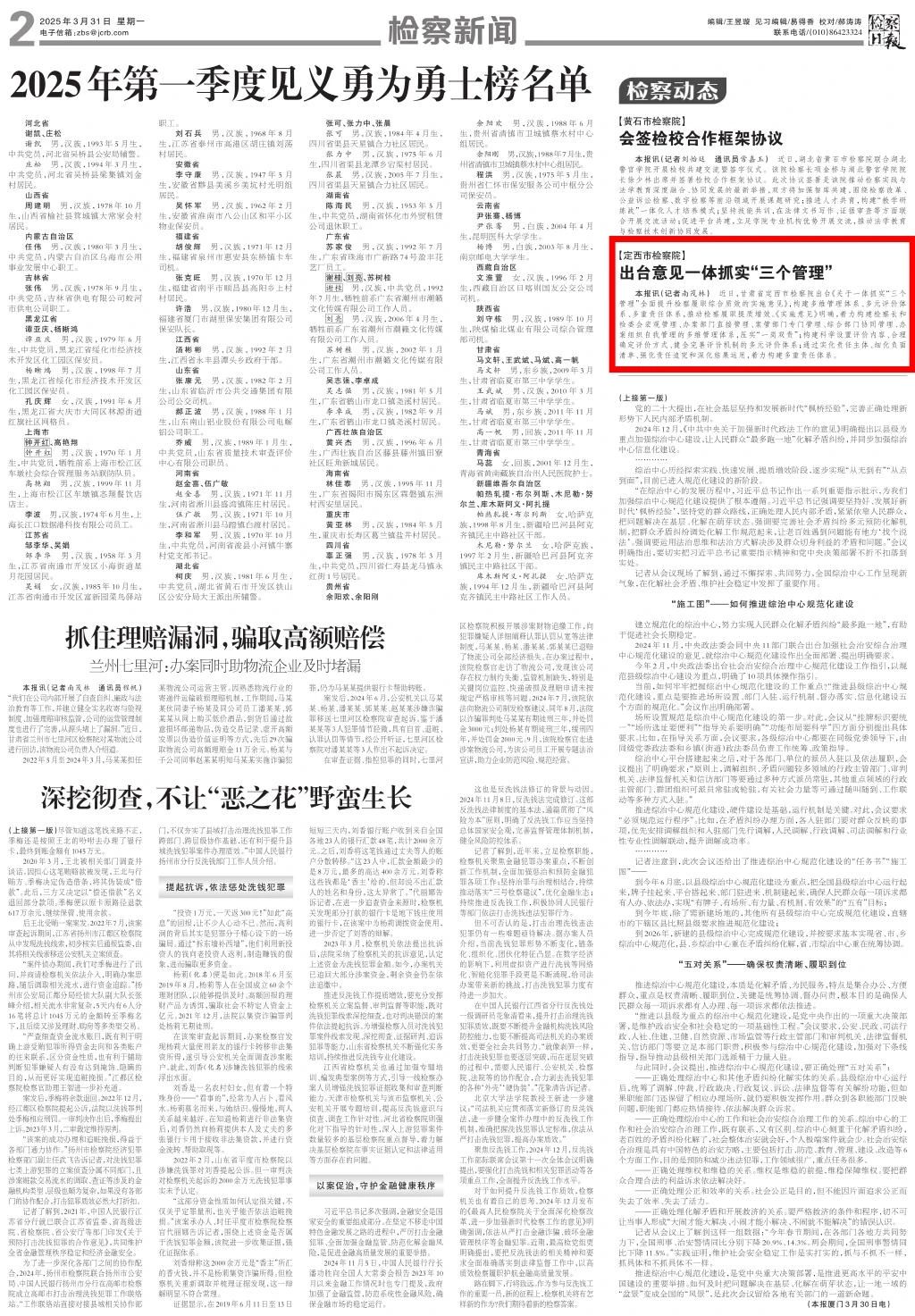 2025年3月31日,检察日报刊发《定西市检察院:出台意见一体抓实“三个管理”》。