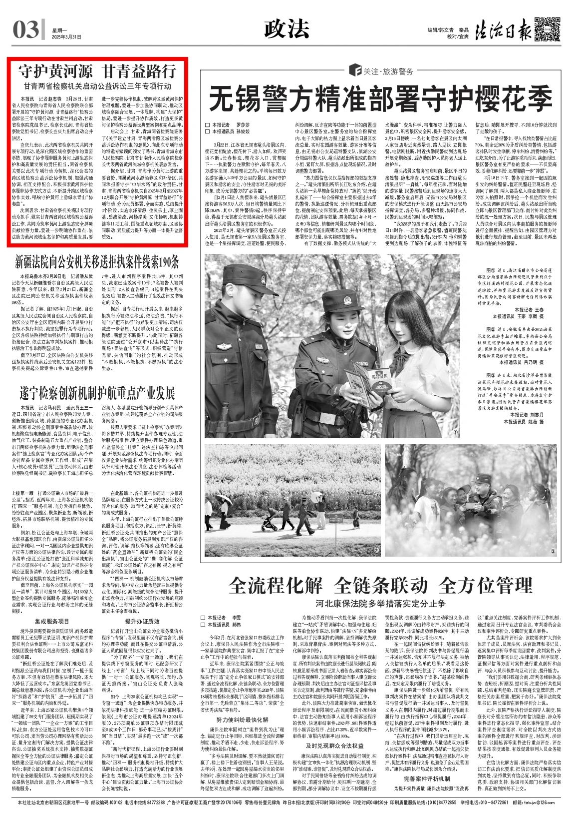 据介绍,甘肃、青海作为黄河上游的重要省份,同属黄河水源涵养区和补给区,共同承担着守护“中华水塔”的政治责任。甘肃、青海两省检察机关自2025年3月至2027年12月联合开展“守护黄河源 甘青益路行”专项行动,分为动员部署、全面实施、总结提升3个阶段,实施水泽清源、生灵乐土、厚土固基、碧波清流、河畅岸美、文化扬帆、机制铸链等11项工程,围绕重点领域办案、区域协同联动、素质能力提升等方面一体提升监督质效。(记者赵志锋)