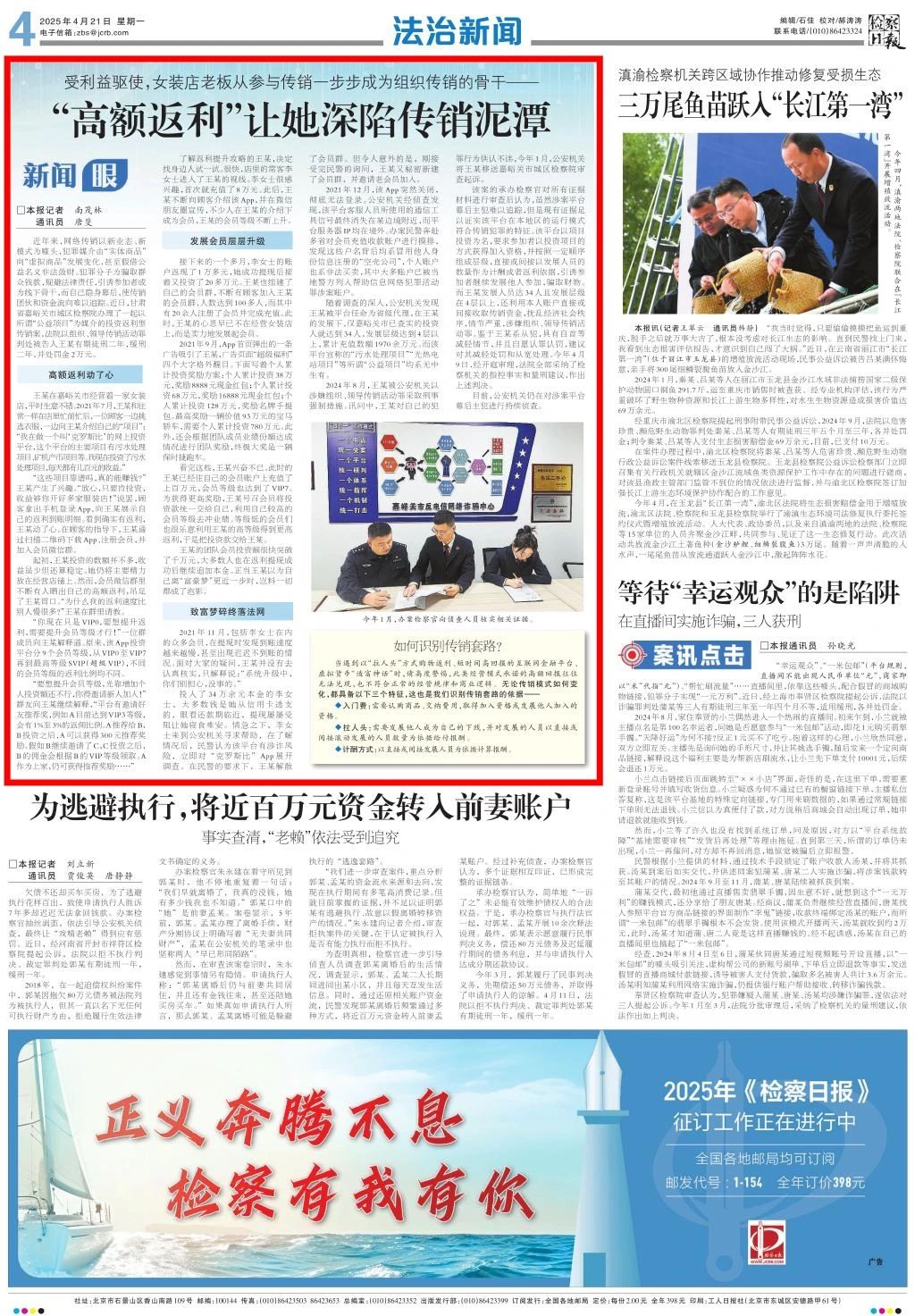 2025年4月21日,检察日报刊发《“高额返利”让她深陷传销泥潭》。