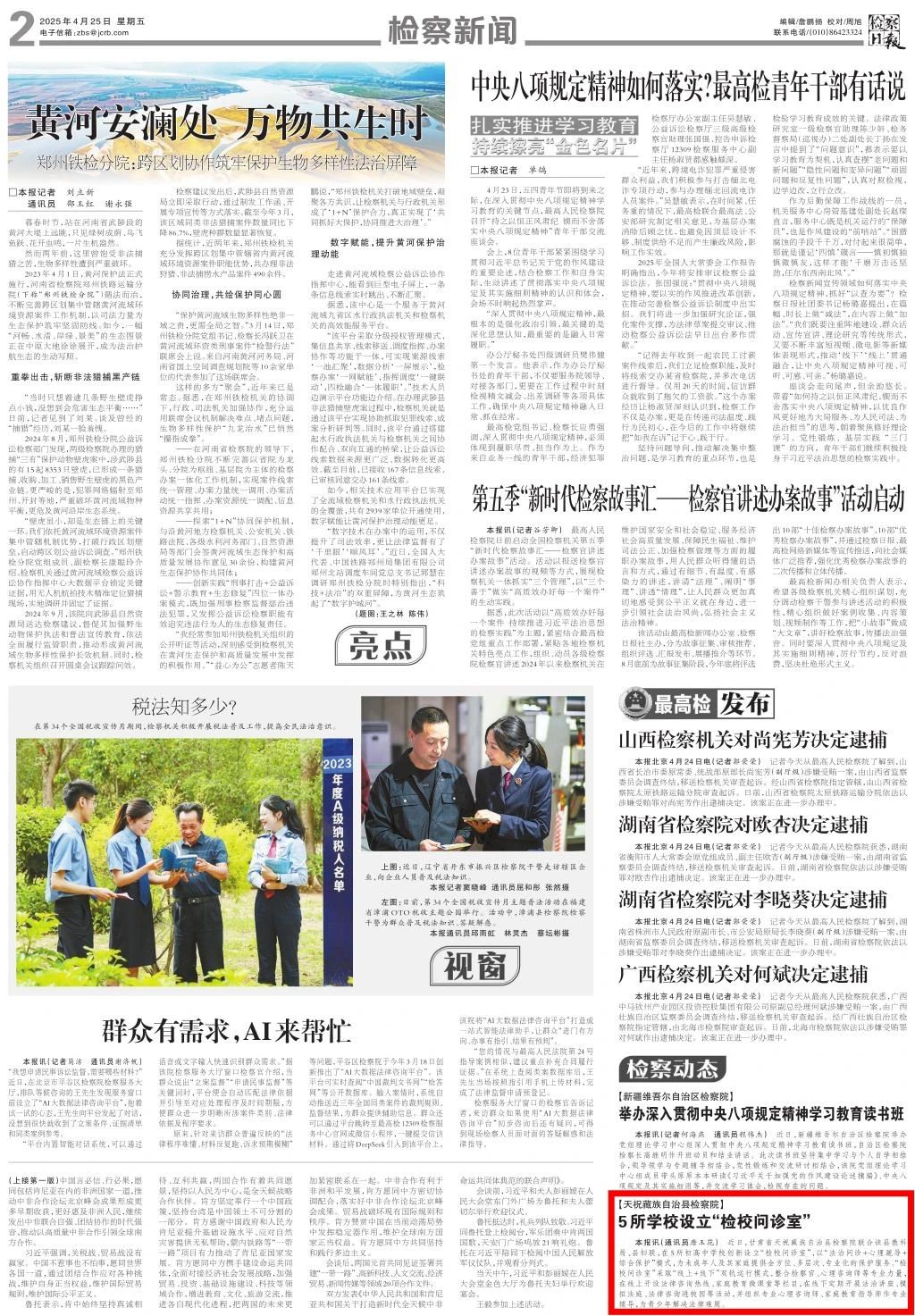 2025年4月25日,检察日报刊发《天祝藏族自治县检察院:5所学校设立“检校问诊室”》。