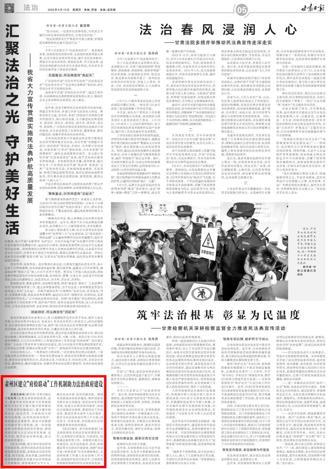 2025年5月15日,甘肃日报刊发《肃州区建立“府检联动”工作机制助力法治政府建设》。