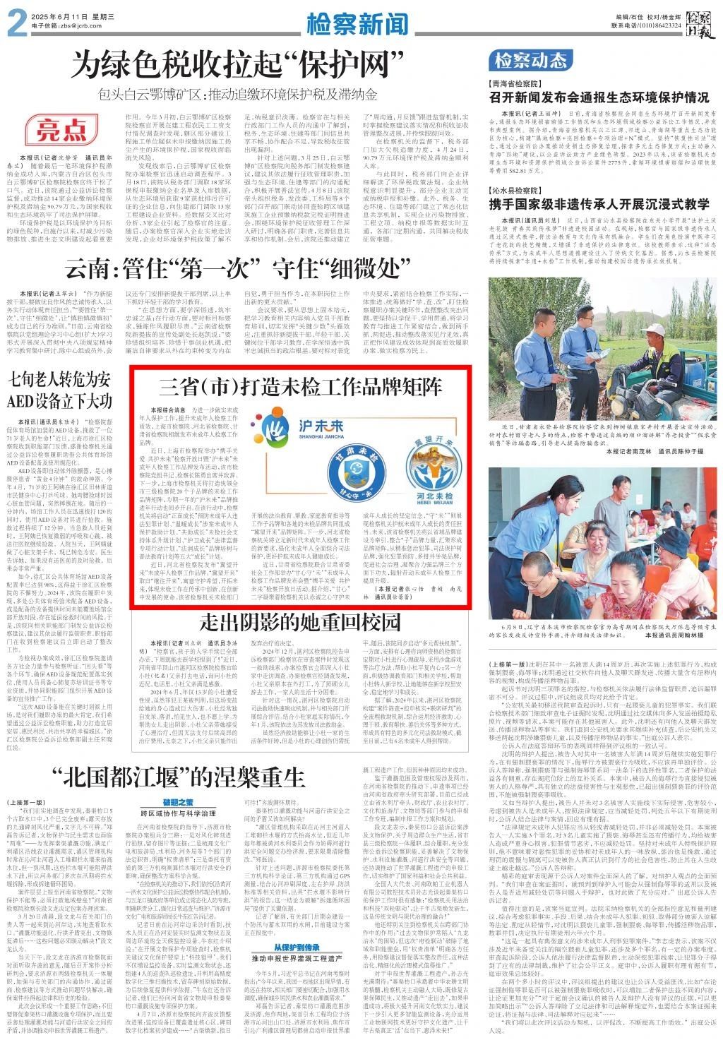 2025年6月11日,检察日报刊发《三省(市)打造未检工作品牌矩阵》。