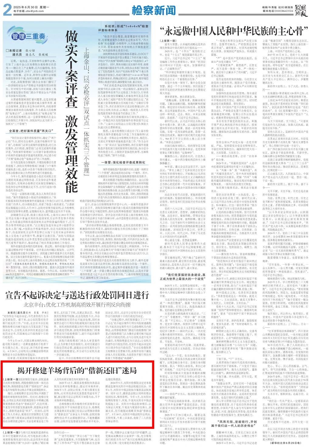 2025年6月30日,检察日报头版刊发《揭开修建羊场背后的“借新还旧”迷局》。