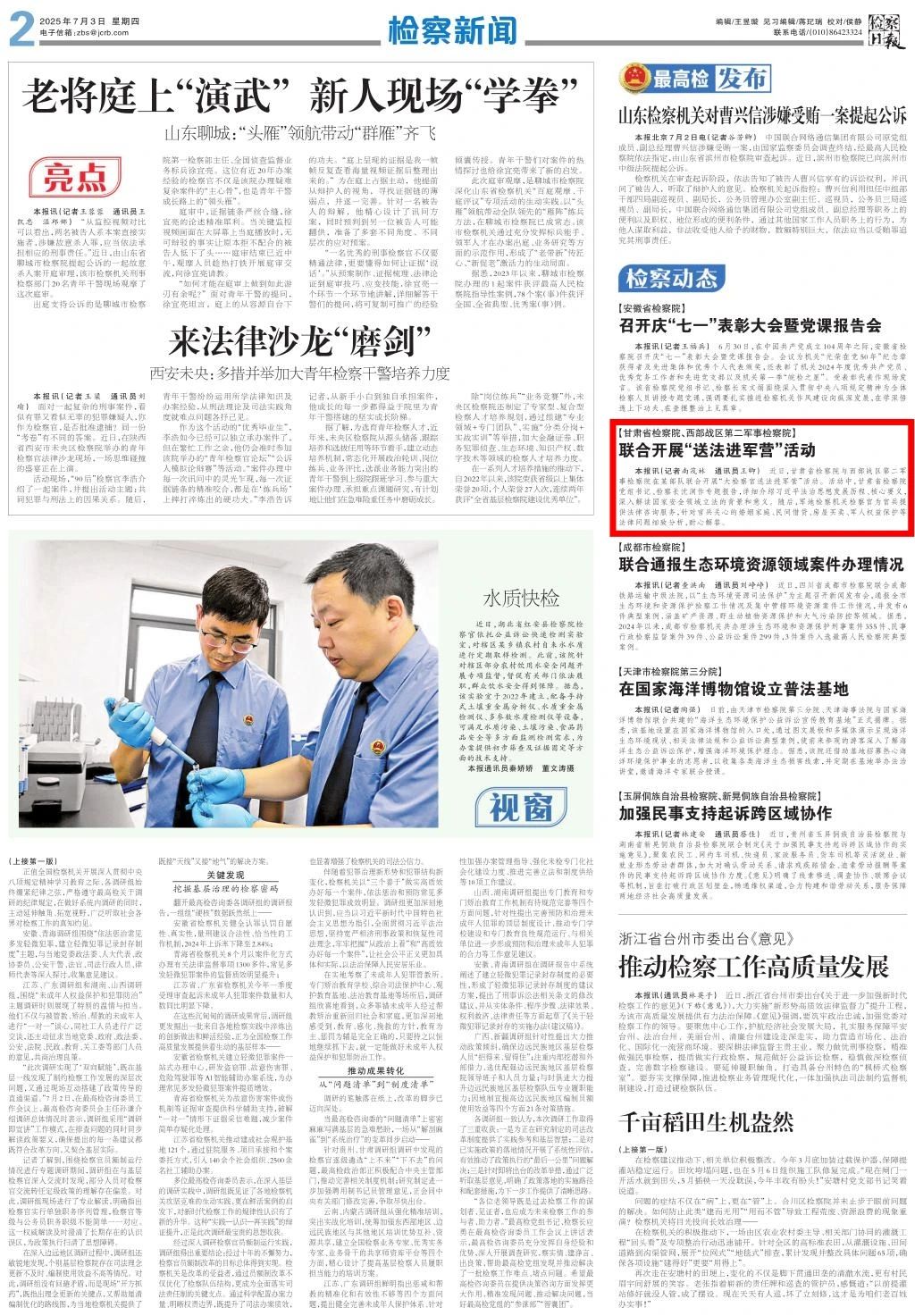 2025年7月3日,检察日报刊发《澳门彩 、西部战区第二军事检察院:联合开展“送法进军营”活动》。