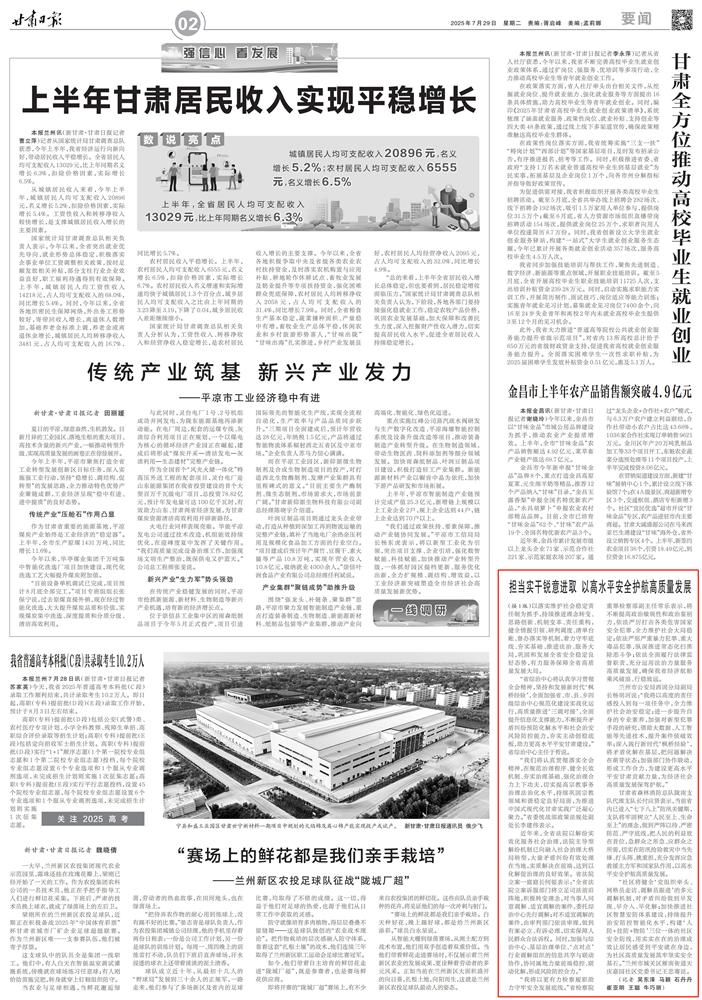 2025年7月29日,甘肃日报头版刊发《担当实干锐意进取 以高水平安全护航高质量发展——省委十四届八次全会在我省党员干部中引发热烈反响》。