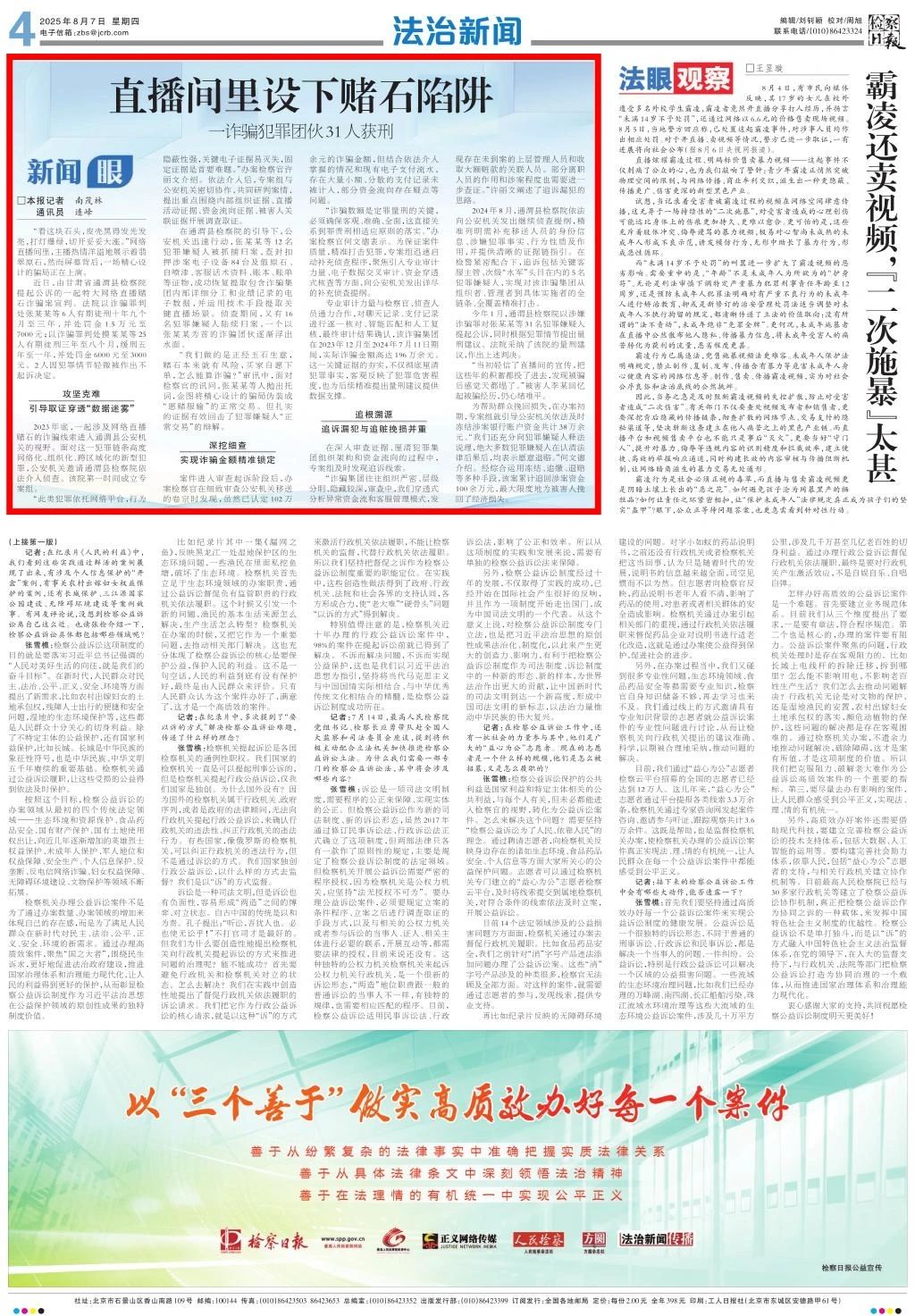 2025年8月7日,检察日报刊发《直播间里设下赌石陷阱 一诈骗犯罪团伙31人获刑》。
