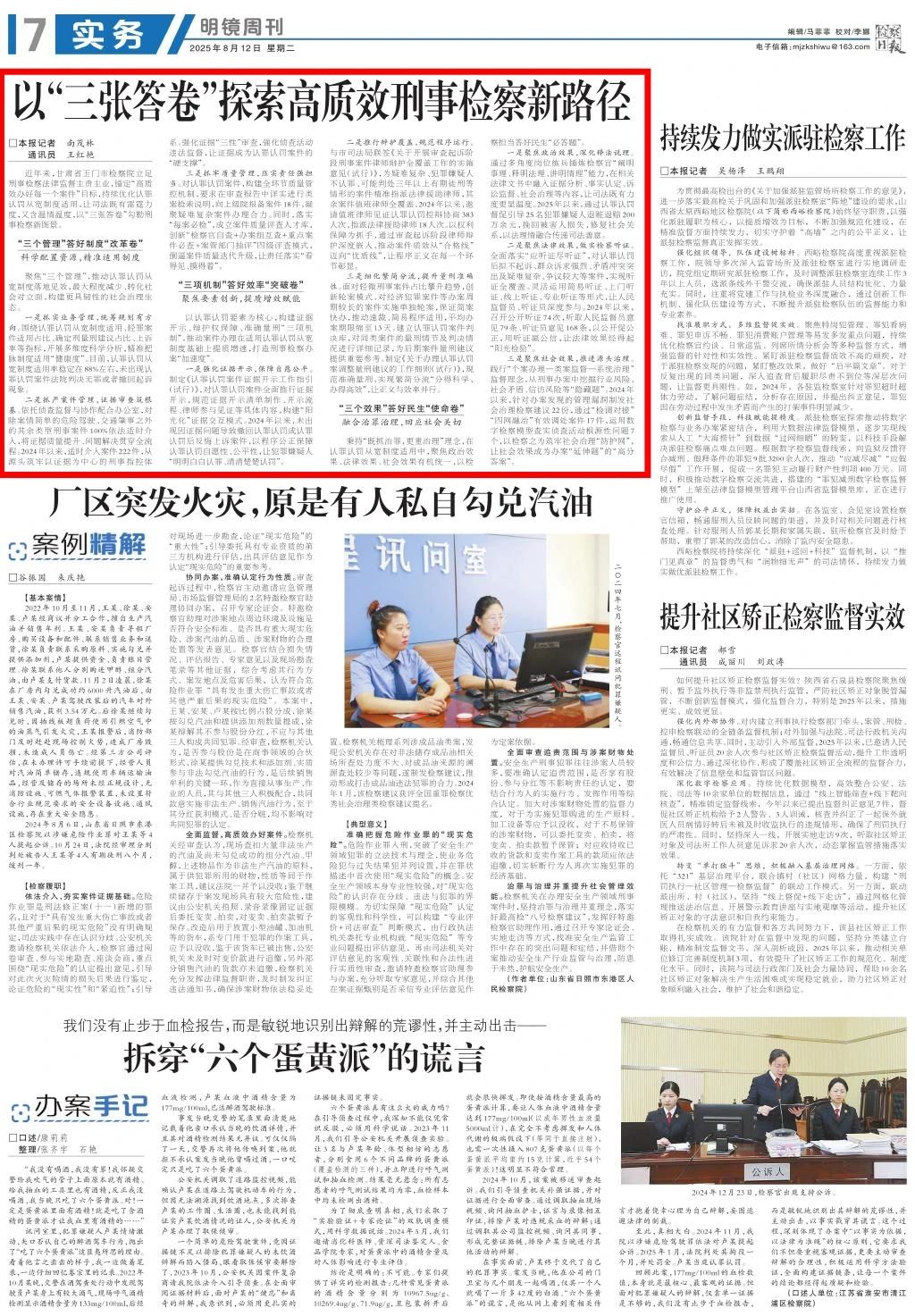 2025年8月12日,检察日报明镜周刊刊发《以“三张答卷”探索高质效刑事检察新路径》。