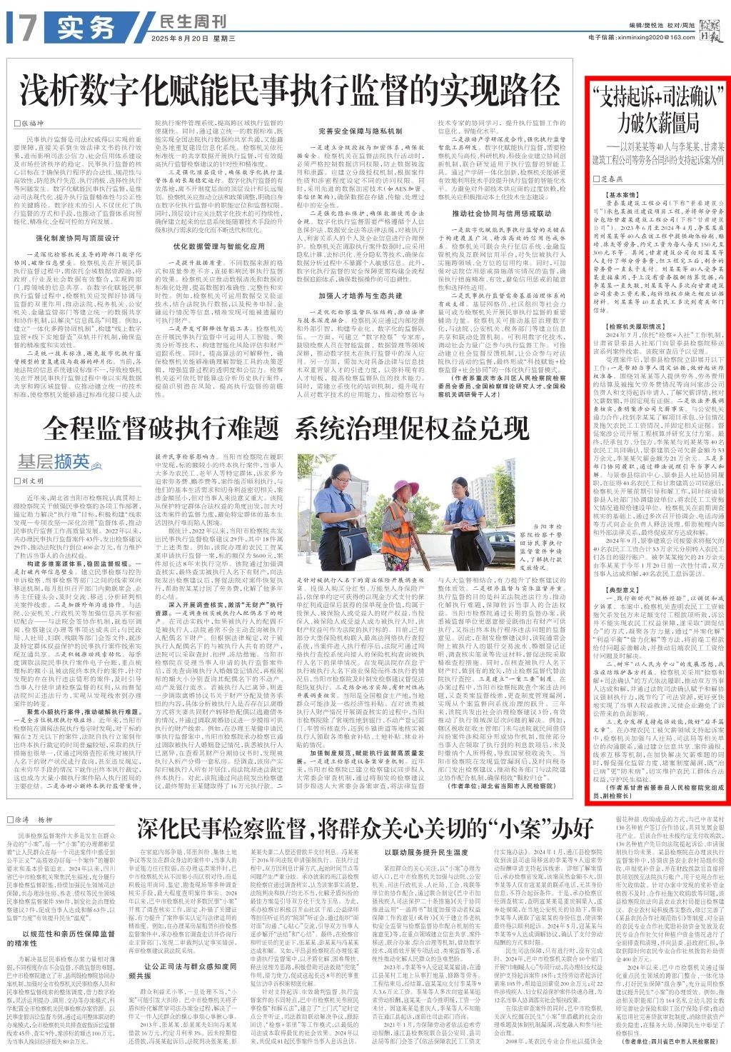 2025年8月20日,检察日报民生周刊刊发《“支持起诉+司法确认”力破欠薪僵局——以刘某某等40人与李某某、甘肃某建筑工程公司等劳务合同纠纷支持起诉案为例》。