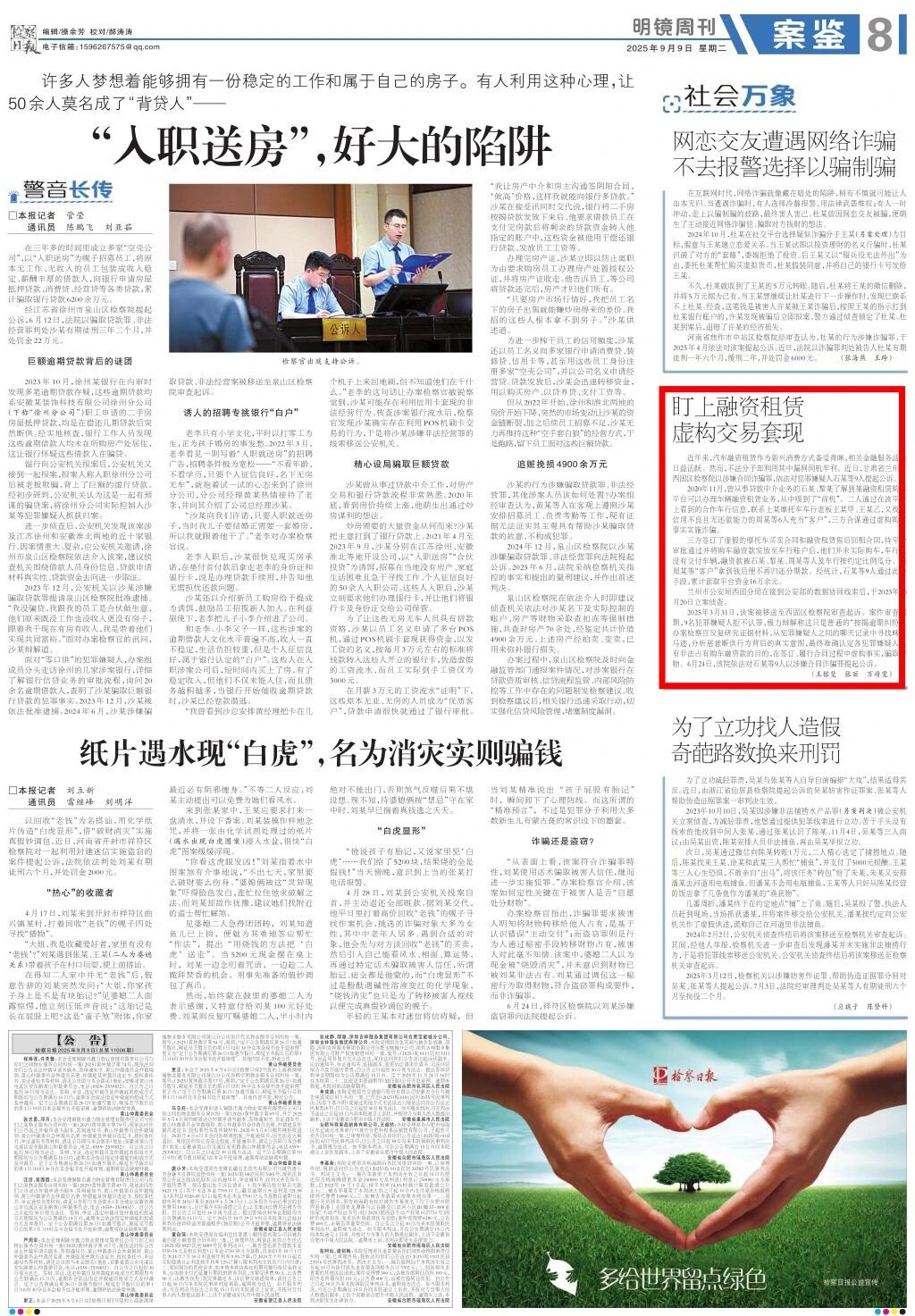 2025年9月9日,检察日报明镜周刊刊发《盯上融资租赁 虚构交易套现》。