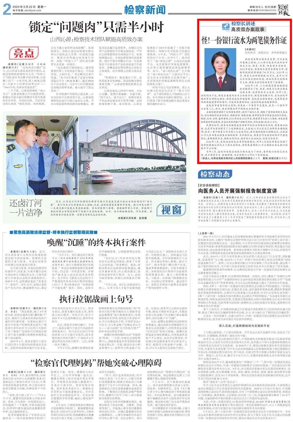 2025年9月22日,检察日报刊发《怪!一份银行流水为两笔债务作证》。