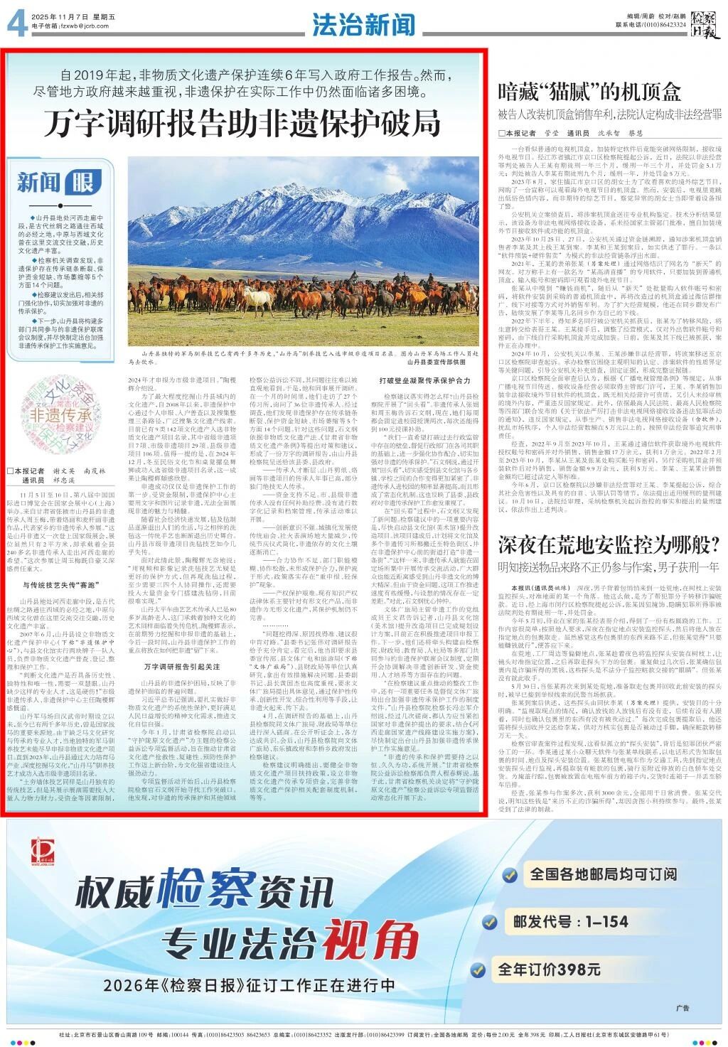 2025年11月7日,检察日报刊发《万字调研报告助非遗保护破局》。