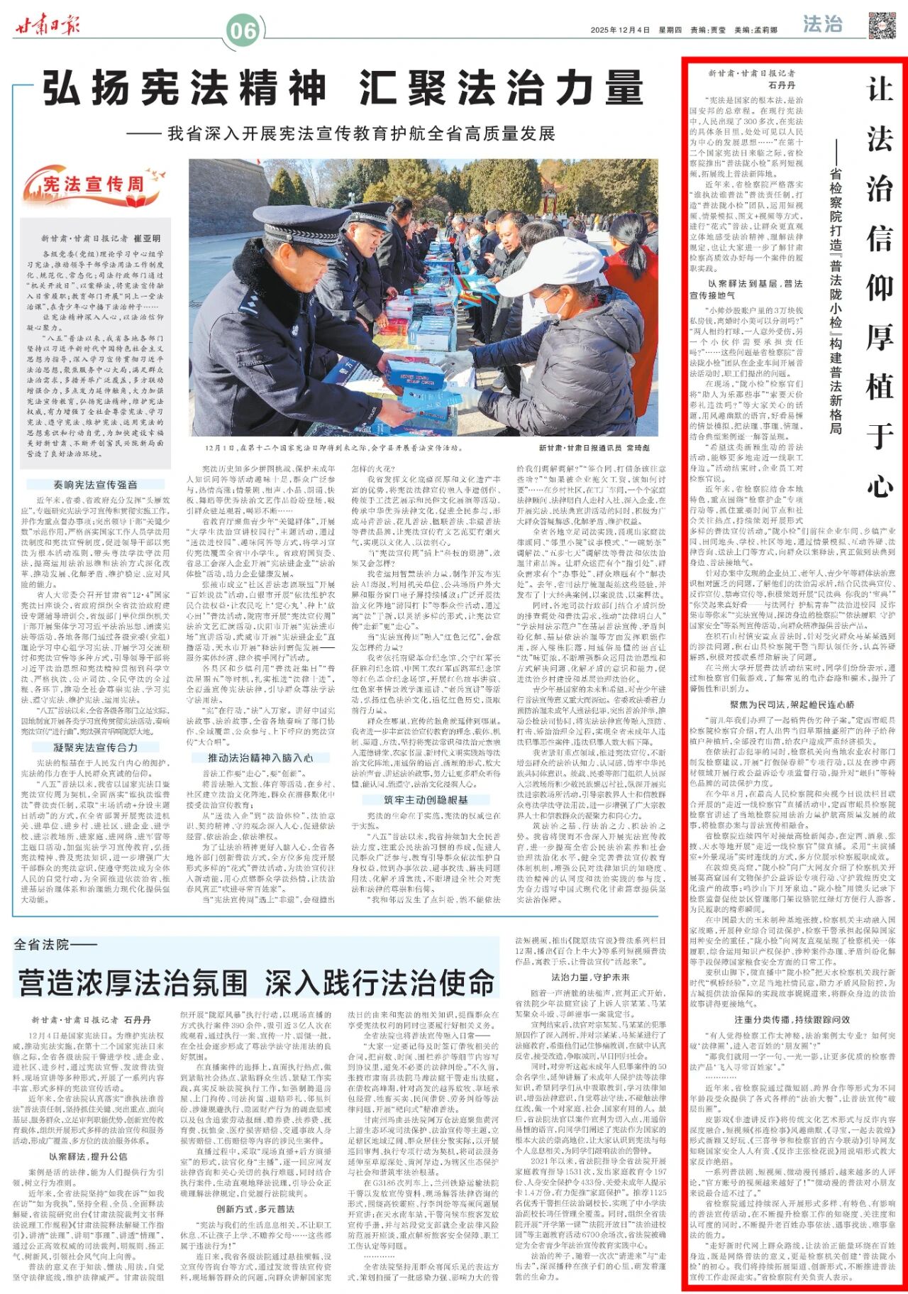 2025年12月4日,甘肃日报刊发《让法治信仰厚植于心——澳门彩