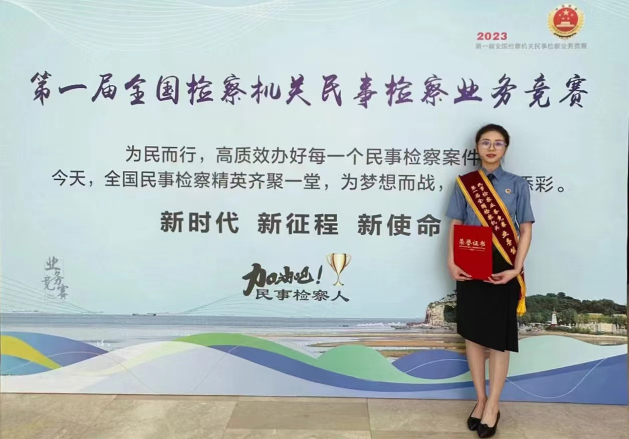 坚持学习,牢记初心使命。从检以来,她始终坚持政治理论和业务知识学习不放松,在本职岗位上恪尽职守、踏实工作,积极参与课题研究、业务竞赛等各类活动,先后荣获“首届全省检察机关民事检察业务竞赛二等奖”“全国民事检察业务能手”称号;撰写的虚假诉讼经验材料获最高检交流推广,参与撰写的《民事虚假诉讼检察监督实证分析》论文在省级法治期刊刊发。