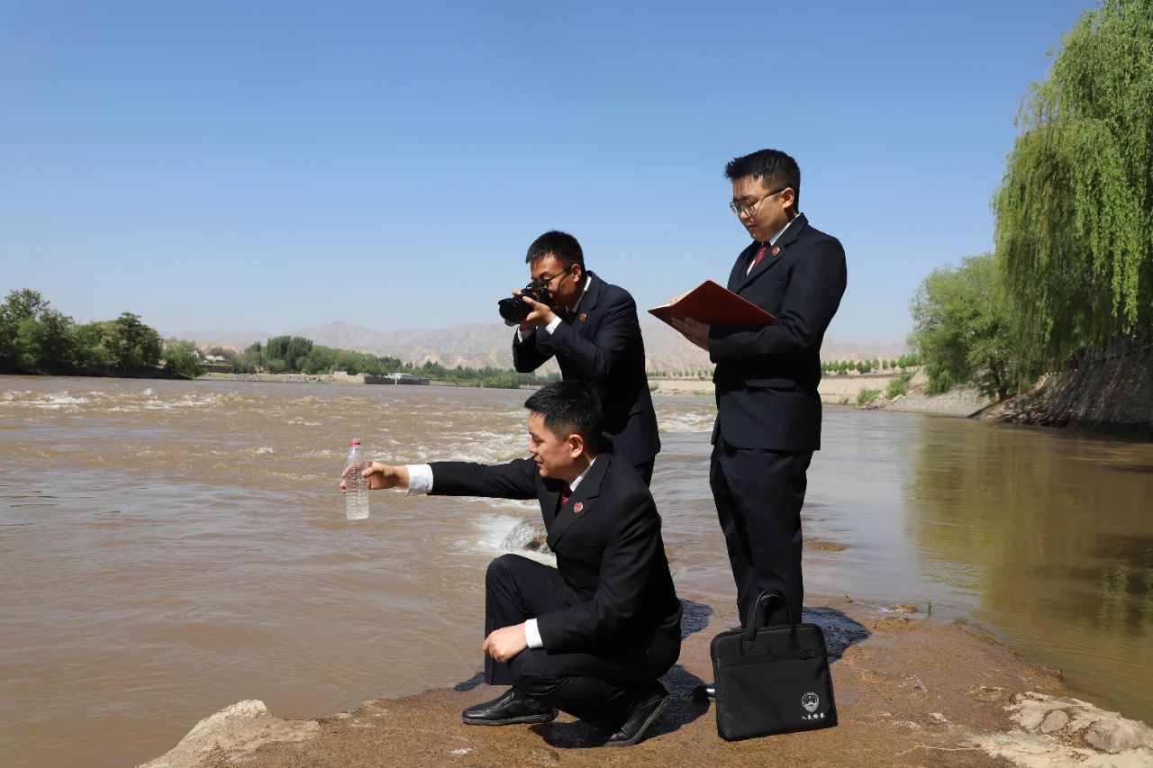 2024年6月,白银市检察院检察官对黄河白银段一级水源地水质取样调查。