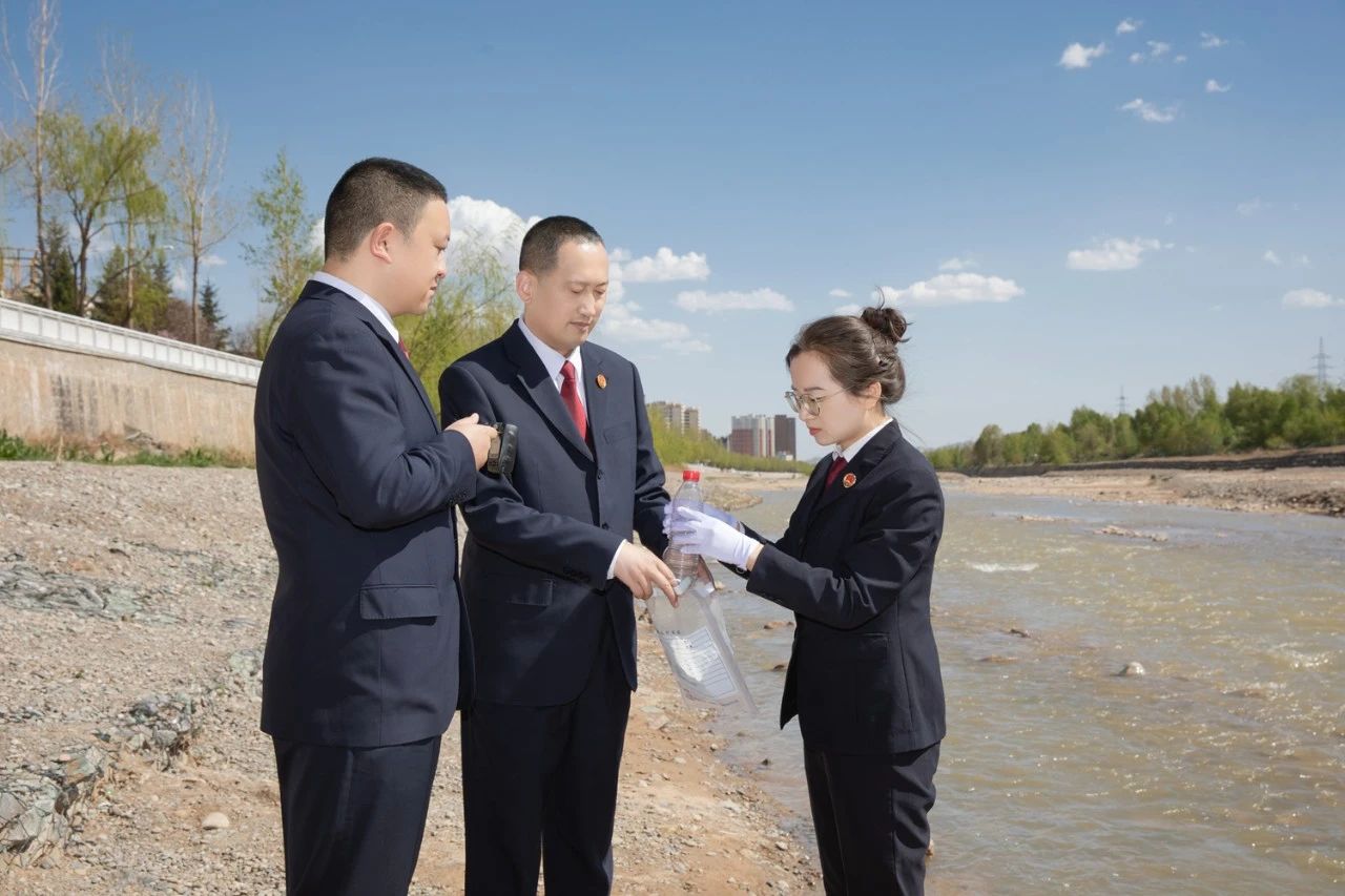 2023年,永登县检察院干警对庄浪河水质进行检测。