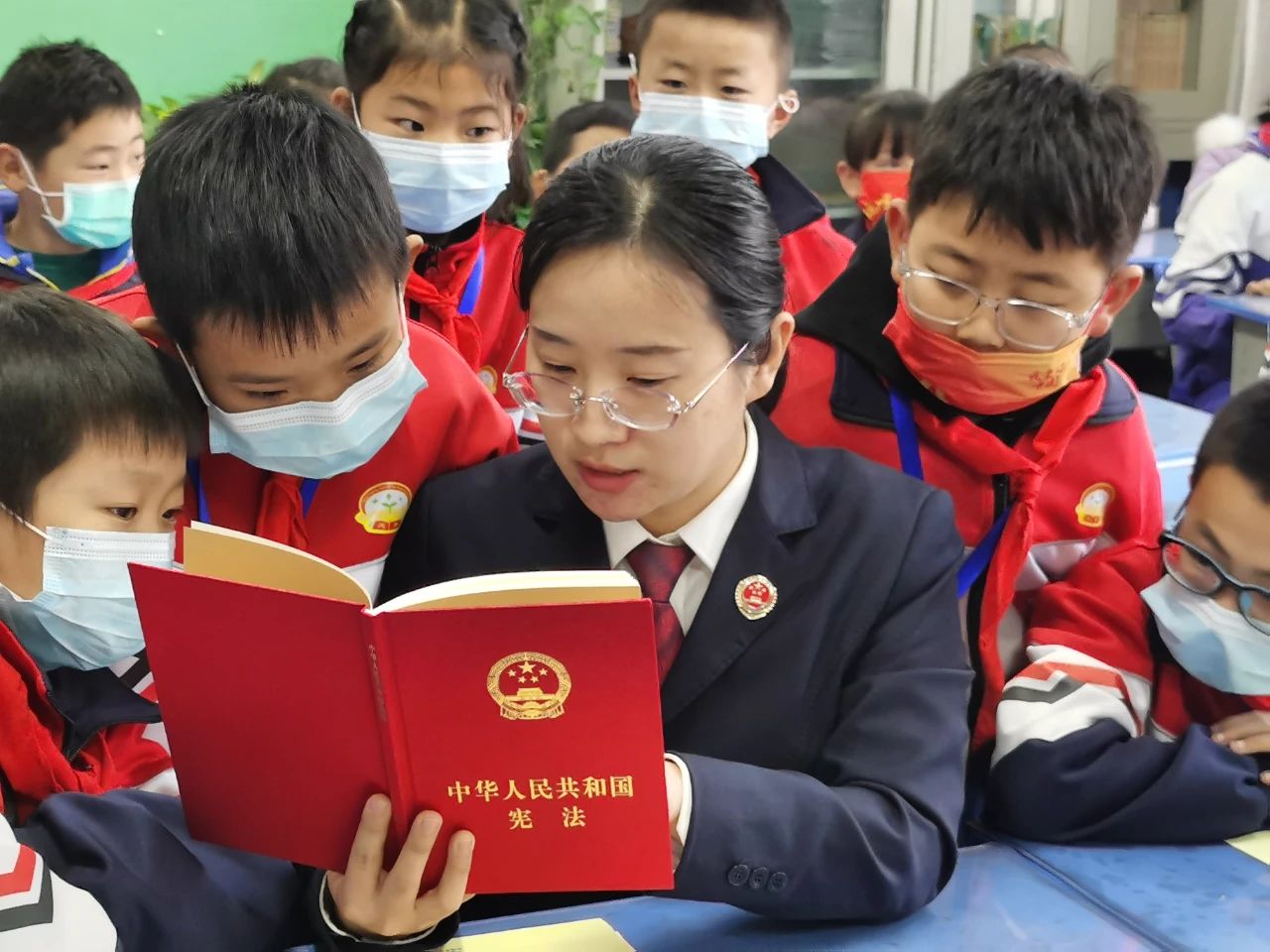 2021年,在“12·4”国家宪法日来临之际,庆城县检察院干警走进庆华小学开展法治宣传活动。