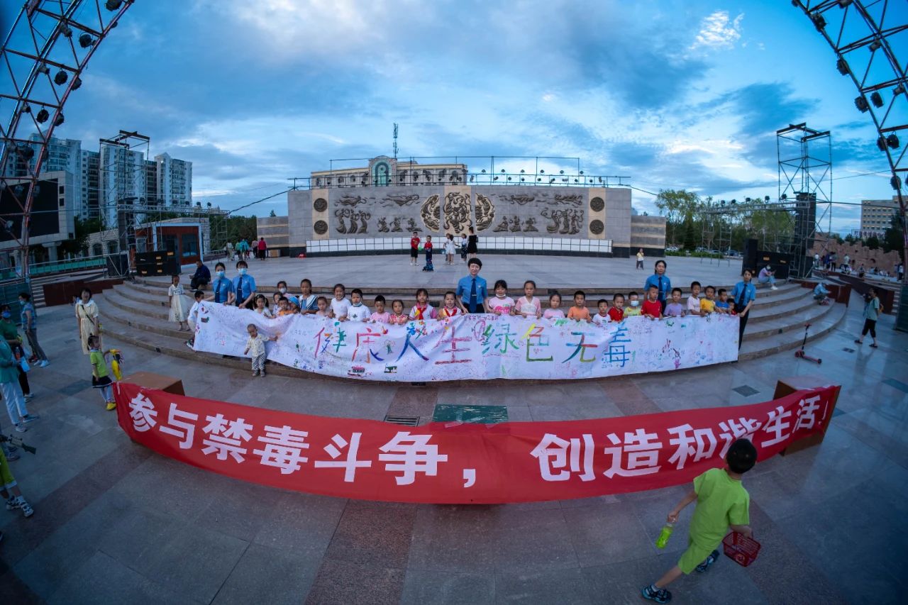 2022年6月,嘉峪关市检察院在雄关广场开展“健康人生 绿色无毒”禁毒主题宣传,组织现场未成年人参与绘制禁毒主题长卷,普及禁毒相关法律知识。