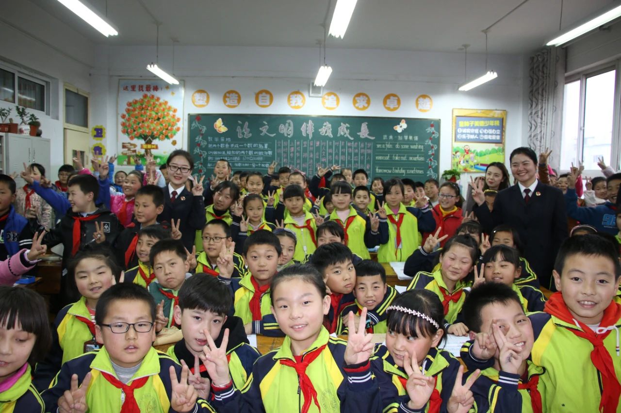 2018年9月,天水市秦州区检察院干警深入市人民路小学开展法治讲座后与小朋友们合影留念。