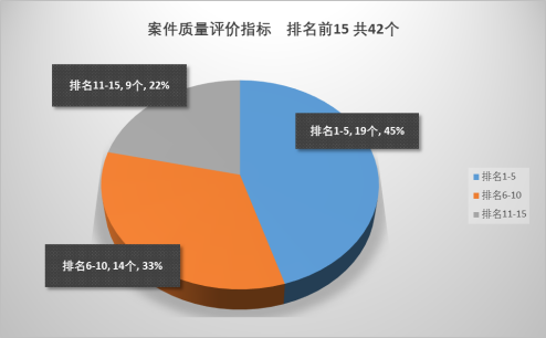 其他数据指标名次提升。案件质量评价指标中,排名全国前15位的共42个,占目前通报指标总数的65.6%