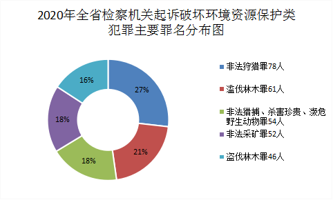 办理破坏环境资源保护类案件数量上升。受理审查起诉破坏环境资源保护类犯罪563人,同比上升8.3%。共决定起诉234409人,同比分别上升7.3%9.4 %起诉破坏环境资源保护类犯罪的主要罪名集中在:非法狩猎罪78人,滥伐林木罪61人,非法猎捕、杀害珍贵、濒危野生动物罪54人,非法采矿罪52人,盗伐林木罪46人。