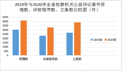 共受理各类公益诉讼案件线索4130,同比上升36.21%。审查后,启动诉前程序3318件,同比上升43.14%提起公益诉讼174件,占立案数的4.47%