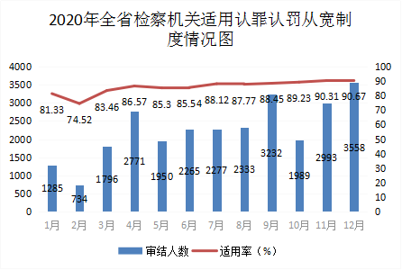 适用率不断提高。全省检察机关适用认罪认罚从宽制度的全年适用率87.08%同比增加34.44个百分点,环比增加1.65个百分点从各类犯罪案件看,职务犯罪适用率提高最多,较上年增加44.86个百分点,其次为经济犯罪,较上年增加34.75个百分点